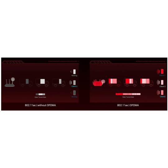 - Bezkonkurenční rychlost Wi-Fi 6 - překonává gigabitovou bariéru rychlostí až 2402 Mb/s (5 GHz) + 574 Mb/s (2,4 GHz)