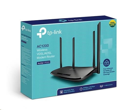 TP-Link Archer VR300 WiFi5 VSDSL/ADSL router (AC1200, 2,4GHz/5GHz, 3x100Mb/s LAN, 1x100Mb/s LAN/WAN, 1xRJ11)