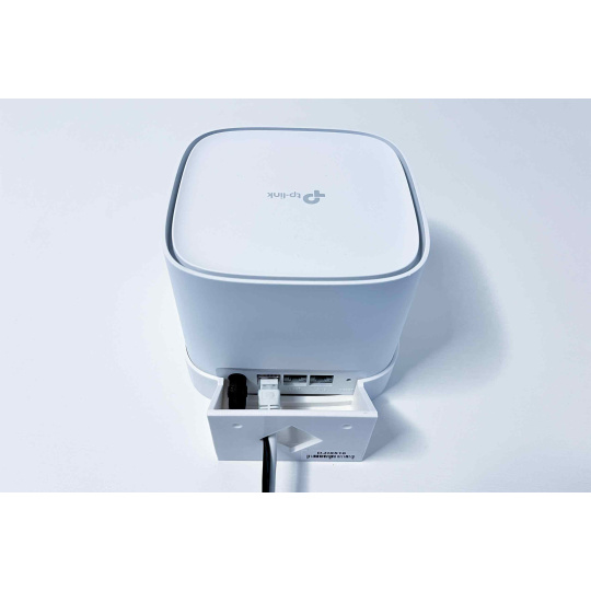 Plastový držák na stěnu pro TP-Link DHX510, HX520 na stěnu a to pomocí dvou šroubů. Držák je vyroben z PETG materiálu na 3D tiskárně a má bílou barvu.