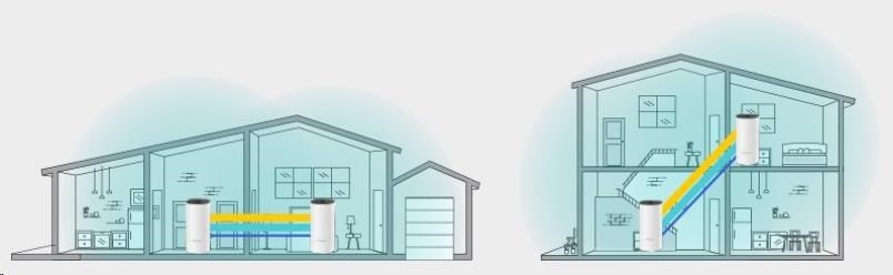 - Díky pokročilé Deco síťové technologii jednotky spolupracují na vytvoření jednotné sítě s jediným názvem sítě. Zařízení se automaticky přepíná mezi jednotkami Deco při vašem pohybu po domě pro dosažení nejvyšší možné rychlosti.