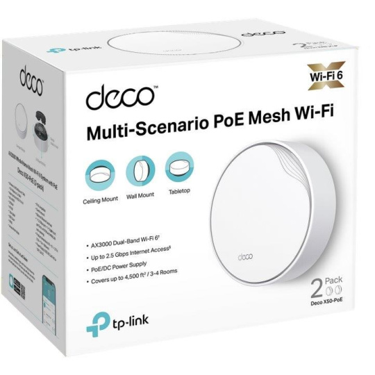 TP-Link Deco X50-PoE (2-pack) WiFi6 Mesh (AX3000,2,4GHz/5GHz,1x2,5GbELAN/WAN,1xGbELAN/WAN,1xPoE)