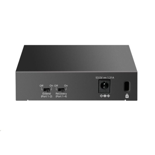 | Advanced Features | • Extend Mode Button (Ports 1–2, Up to 250 m PoE power supply and data transmission) • PoE Auto Recovery Button (Ports 1-4) • Compatible With IEEE 802.3af/at Compliant PDs • Mac Address Auto-Learning and Auto-Aging • IEEE 802.3x Flow Control • 802.1p/DSCP QoS • IGMP Snooping • Green Technology |