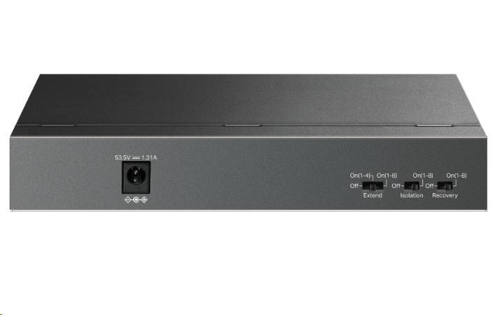Rozpočet 63 W PoE: Osm 10/100 Mbps PoE kompatibilních portů s 802.3af/at se snadno připojují a napájejí pevná zařízení, jako jsou IP kamery, přístupové body a IP telefony, pomocí jediného kabelu. Každý port PoE podporuje výstup až 30 W PoE.