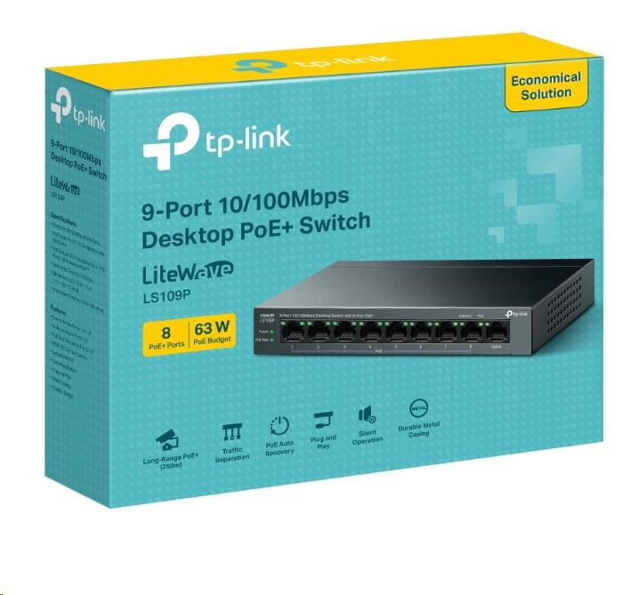 TP-Link LiteWave switch LS109P (9x100Mb/s, 8xPoE+, 63W, fanless)