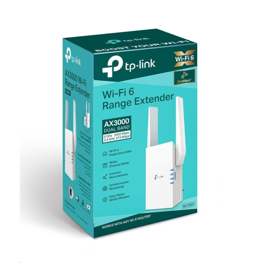 TP-Link RE705X OneMesh/EasyMesh WiFi6 Extender/Repeater (AX3000,2,4GHz/5GHz,1xGbELAN)