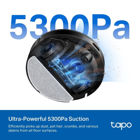 • Mimořádně výkonné sání 5300 Pa: Zajišťuje, že robot účinně sbírá prach, zvířecí chlupy, drobky a různé nečistoty ze všech podlahových ploch a zanechává váš domov bez poskvrnky.