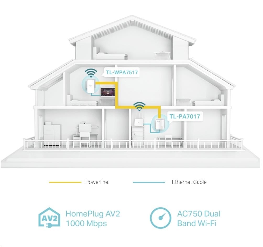 Sada adaptérů TL-WPA7517 KIT promění vaši existující domácí elektroinstalaci na gigabitovou síť a umožní přivést kabelovou a bezdrátovou síť všude tam, kde je elektrická zásuvka.