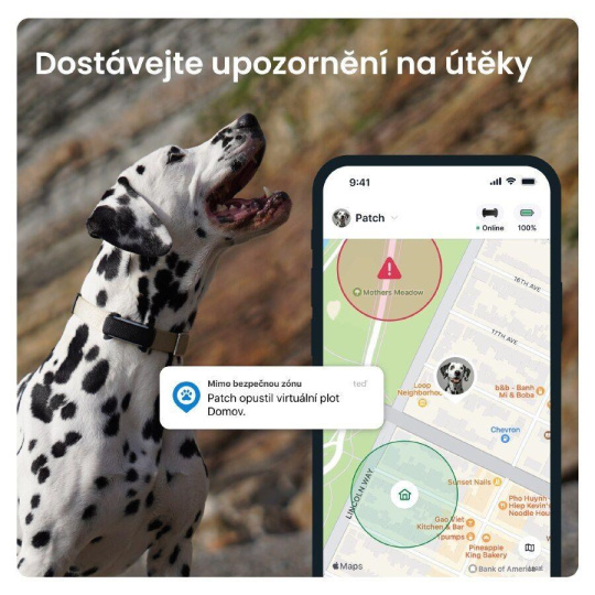 GPS tracker pro psy je 100% vodotěsný, odolný proti nárazům a jeho baterie vydrží až 10 dnů. Pasuje na většinu obojků a postrojů. Je určen pro psy o hmotnosti nad 4 kg.Zprávy o nebezpečí
