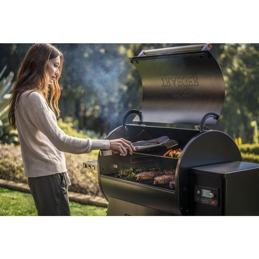 Vlastnosti grilu Traeger zahrnují všestranný teplotní rozsah od 165 °F do 500 °F, ideální pro uzení, pečení, grilování i BBQ, s rychlým zahřátím a konzistentní regulací teploty díky napětí 120 V AC a výkonu 95 W. Díky WiFIRE® připojení a integrovanému senzoru pelet můžete sledovat vaření a hladinu pelet odkudkoli pomocí aplikace Traeger. Nabízí velkou varnou plochu 1651 cm2 na dvou řadách porcelánem potažených ocelových roštů a je navržen s izolovanou konstrukcí s dvojitou stěnou pro snížení kolísání teploty. Součástí je i sonda na maso Traeger pro snadnou kontrolu vnitřní teploty, funkce Super Smoke pro vylepšenou chuť dřevěného uzení a pohodlné čištění zásobníku pro rychlou výměnu pelet. Gril se připojuje k elektrické síti pomocí přiloženého 6ft. D2 NEMA napájecího kabelu.