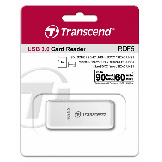 TRANSCEND Card Reader F5, USB 3.0, White