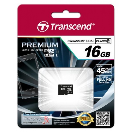 TRANSCEND MicroSDHC karta 16GB Premium, Class 10 UHS-I 300x, bez adaptéru