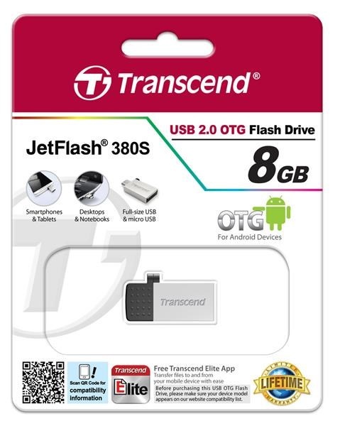 TRANSCEND Flash Disk 8GB JetFlash®380S, USB 2.0/micro USB (R:20/W:5 MB/s) stříbrná
