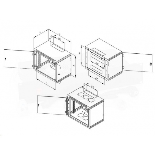 TRITON 19" jednodílný rozvaděč 18U/400mm, 6 otvorů pro ventilátory