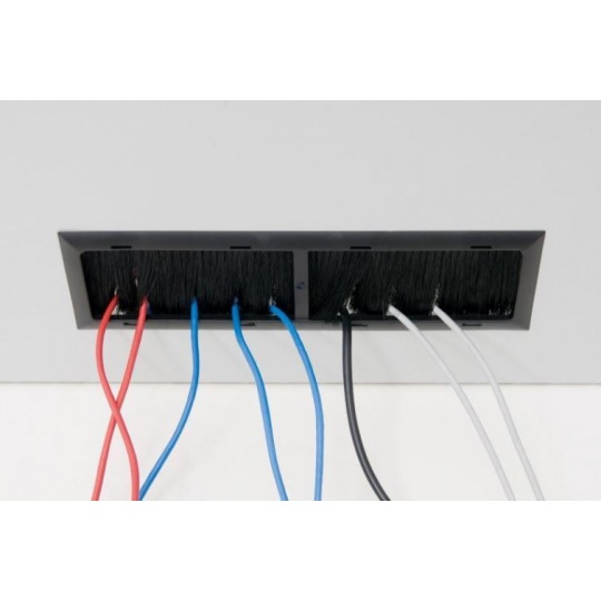 Kabelové vstupy v zadní části rozvaděče jsou zakryty vylamovacími záslepkami. Proti pronikání prachu je možné kabely v otvoru utěsnit záslepkou s kartáčem. K ochraně kabelů před poškozením slouží plastový rámeček (obojí je součástí příbalu rozvaděče).