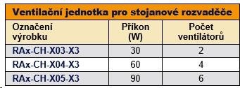 Ventilační jednotka pro stojanové rozvaděče – do čepice se instaluje z venkovní strany rozvaděče, do základny pak z vnitřní strany rozvaděče. Při instalaci do základny rozvaděče je nutno použít montážní rám spodní ventilační jednotky – RAx-CH-Xxx-X1, který se instaluje pomocí oboustranné lepící pásky.