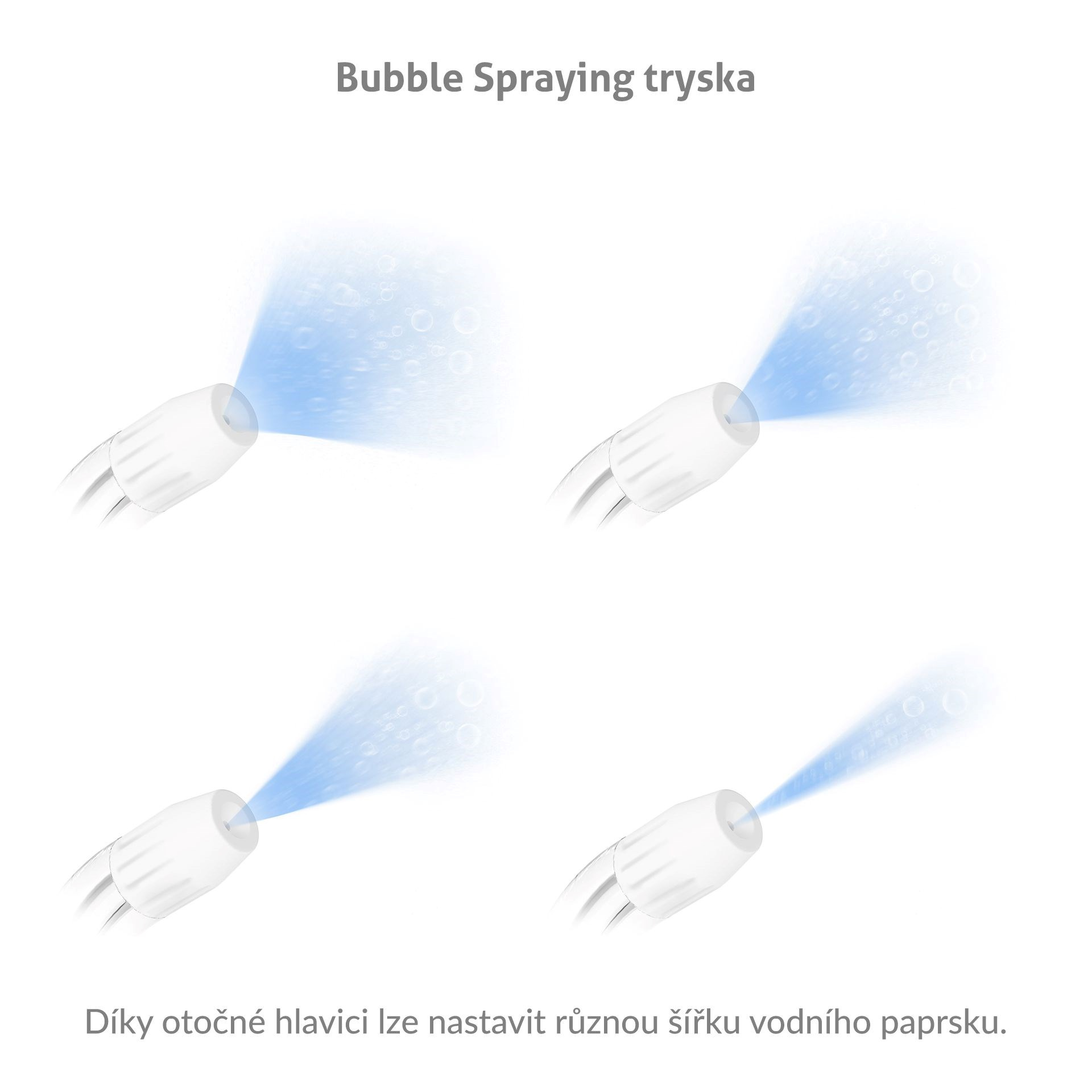 Ústní sprcha nabízí mnohem šetrnější a komfortnější řešení pro čištění mezizubních prostor a těžko dostupných míst než klasické mezizubní kartáčky a zubní nitě. Zároveň je ekonomičtější a ekologičtější, protože dané komponenty není nutné stále dokupovat a likvidovat. U ústní sprchy stačí naplnit 180 ml nádržku vodou a zvolit jeden ze 3 režimů čištění (Normal, Point, Pulse) spolu s intenzitou tlaku, kde je u každého režimu možnost volit ze 4. Technologie StreamTrue®, jež pracuje na principu mikrobublinek vytvořených z vody a vzduchu, které jsou pod vysokým tlakem vháněna do mezizubních prostor, se pak postará o eliminaci až 99 % zubního plaku a dalších nečistot. Velkým pomocníkem je i nová tryska Bubble Spraying s technologií rozprašovaní vody po celé plošce zubu. Její otočná hlavice umožňuje nastavit různou šířku vodního paprsku.