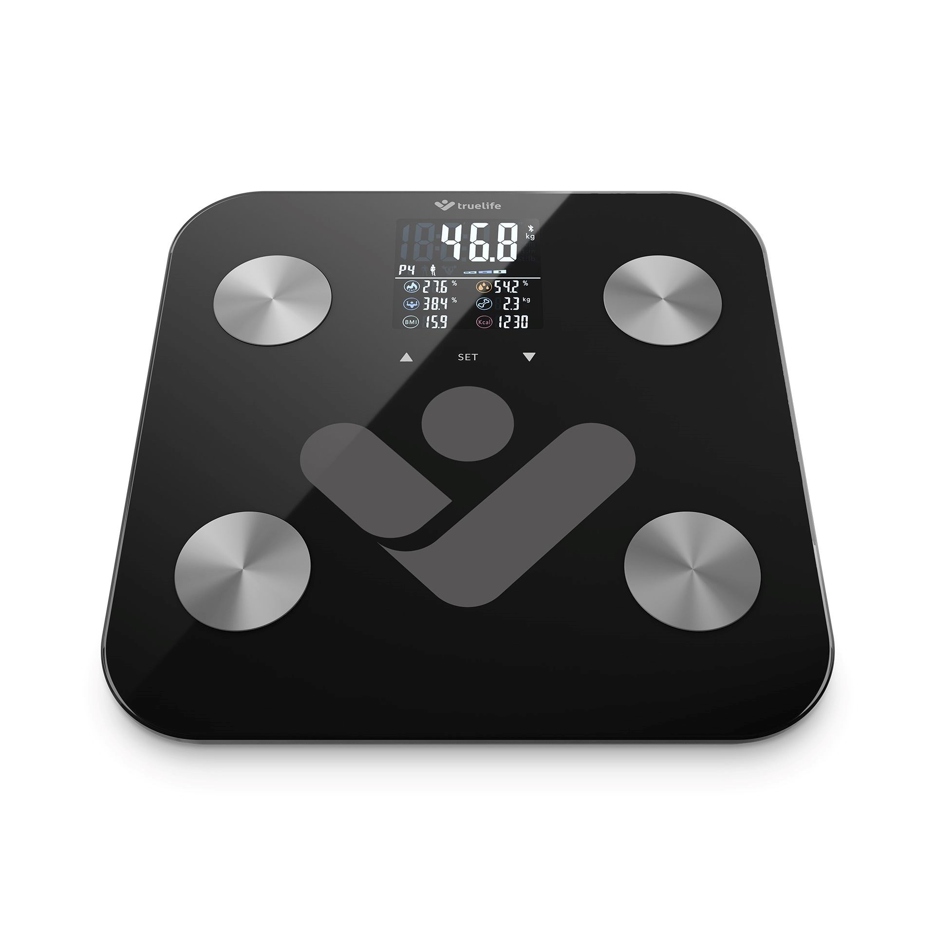 Inteligentní váha TrueLife FitScale W6 BT Black prozradí mnohem více než jen pouhou hmotnost. Říkají vám něco zkratky jako BMI, BMR či BFR? Jedná se o indexy ukazující poměry tukové tkáně či množství energie, kterou tělo potřebuje pro své fungování. Měřitelných indexů těla zvládne 19. Mezi naměřenými hodnotami dále zjistíte hodnotu bílkovin, svalovou frekvenci, kosterní hmotnost, vodu v těle a mnoho dalšího.