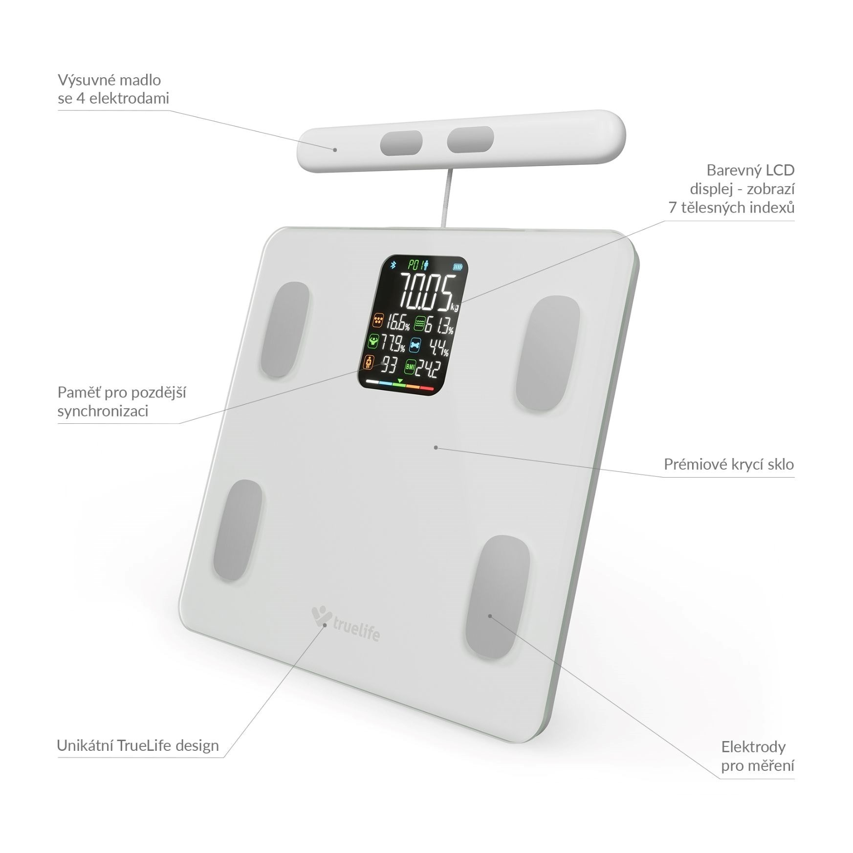TrueLife FitScale W8 BT White - osobní diagnostická bluetooth váha