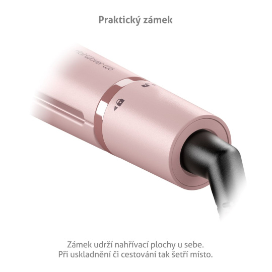 Trojkulma je vybavena zámkem, který umožňuje uzamčení nahřívacích ploch u sebe, aby kulma zabrala při skladování či cestování minimum místa.