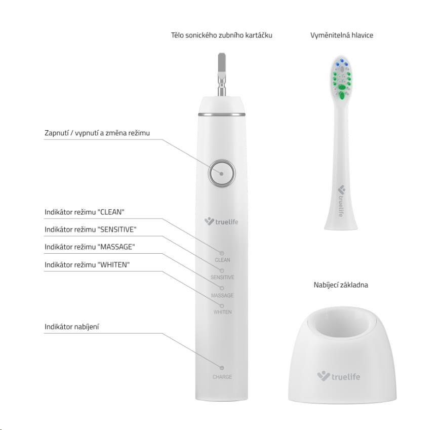 V každém balení TrueLife SonicBrush Compact Duo naleznete 4 hlavice Standard. Doporučujeme každé 3 měsíce zubní hlavici vyměnit za novou. V nabídce naleznete tři typy. Pokud máte zuby příliš citlivé, vyzkoušejte hlavice Sensitive, které jsou vhodné i pro děti od 7 let. Pro co nejbělejší úsměv se vám určitě hodí hlavice Whiten.