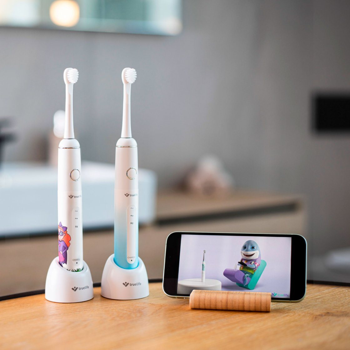 Sonický kartáček TrueLife je svou velikostí i jemností štětin perfektně vhodný pro čištění dětských zubů. Kartáček padne dětem skvěle do ruky a čištění je pro ně snadné. Nabízí 3 režimy čištění – od pomalého pro menší děti po rychlejší pro starší děti, kteří si zuby čistí kompletně samy a zvládají techniku. O správnou délku čištění se postará automatický časovač, takže už nemusíte hlídat za dveřmi.