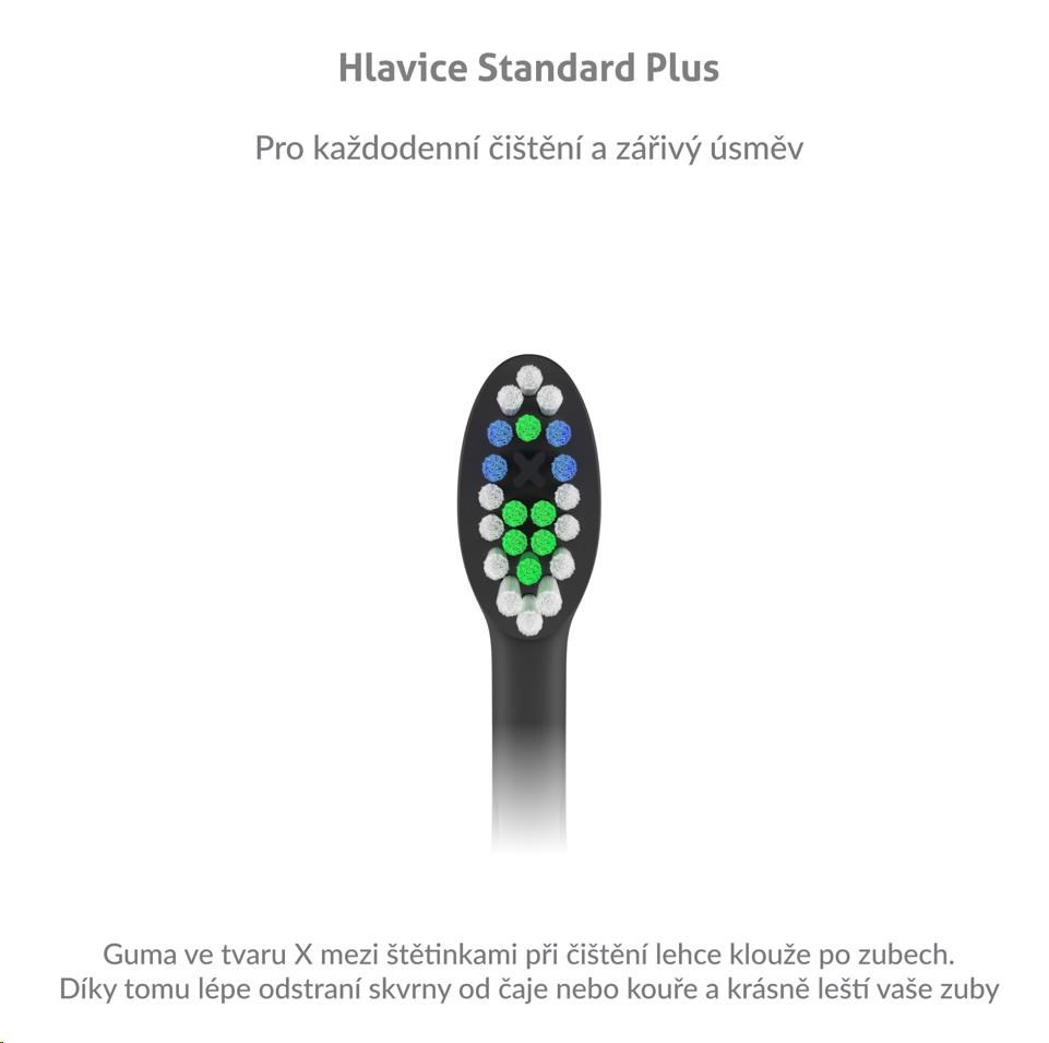 Náhradní hlavice jsou speciálně vyvinuty pro precizní čištění zubů. Guma ve tvaru X mezi štětinkami při čištění lehce klouže po zubech. Díky tomu lépe odstraní skvrny od čaje nebo kouře a krásně leští vaše zuby.