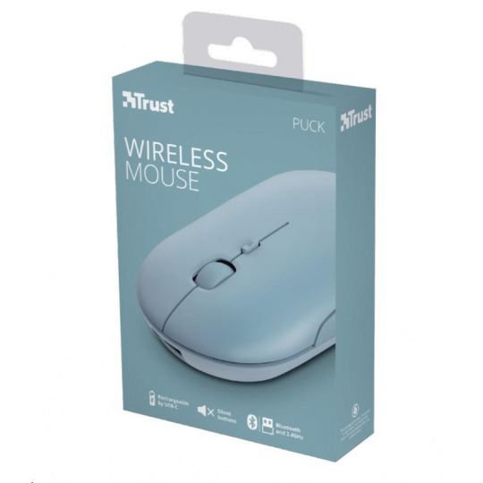 TRUST myš PUCK, bezdrátová, USB, modrá, bluetooth