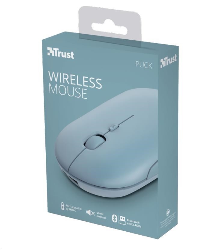 TRUST myš PUCK, bezdrátová, USB, modrá, bluetooth