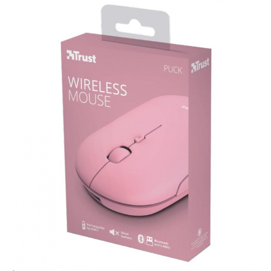 TRUST myš PUCK, bezdrátová, USB, růžová