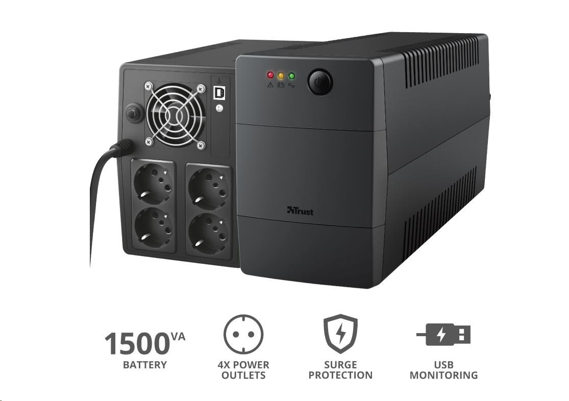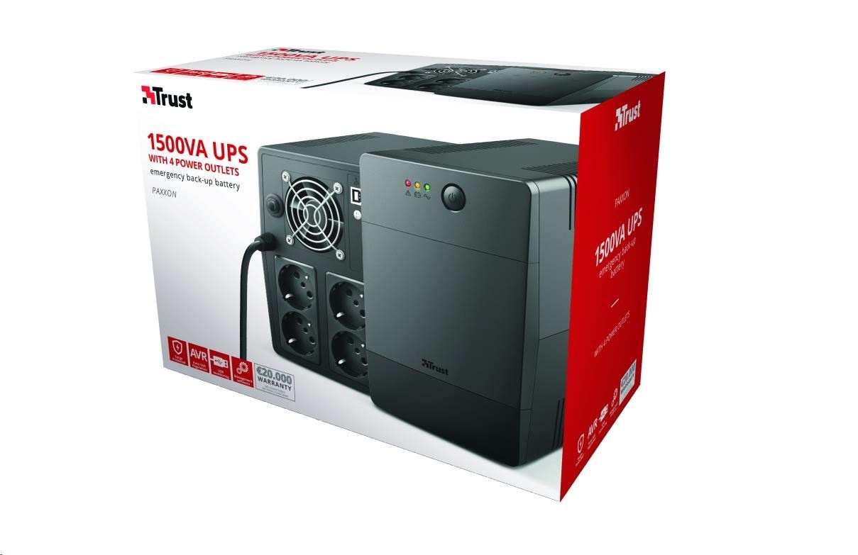 TRUST UPS Paxxon 1500VA UPS with 4 standard wall power outlets