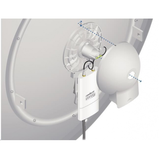Dvoupolarizační 5GHz anténa se ziskem 34dBi vhodná pro jednotku Rocket M5. Využívá horizontální i vertikální polarizaci, čímž nahrazuje dvě samostatné antény a ušetří tak Vaše náklady spojené s pronájmem umístění antén. Anténa je vhodná pro jednoduché vytváření PtP spojů. Je dodávána i s voděodolným příslušenstvím pro propojení s jednotkou Rocket M5.