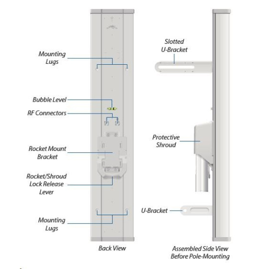 Dvoupolarizační sektorová 20dBi anténa (90°) vhodná pro jednotku Rocket M5 (MIMO). Využívá horizontální i vertikální polarizaci, čímž nahrazuje dvě samostatné antény a lze tak jednoduše vytvořit např. přístupový bod s vysokou propustností. S anténou je dodáváno i příslušenství pro instalaci a voděodolné propojení s jednotkou Rocket M5.