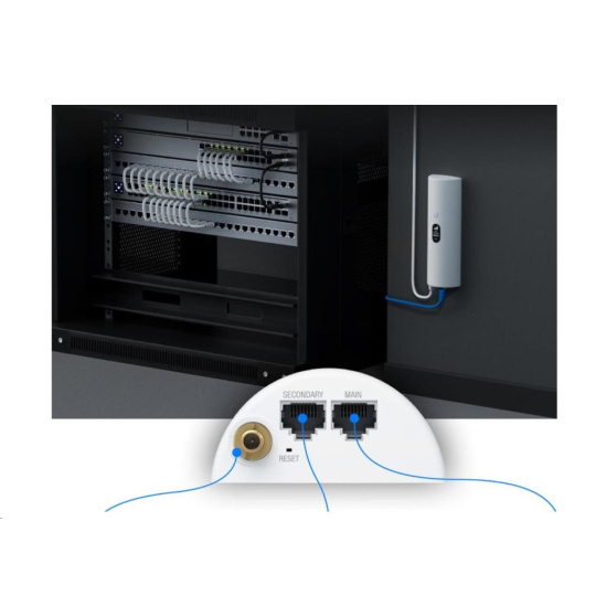 Ubiquiti U-LTE-Pro můžete umístit kamkoliv na místo, kde je nejlepší signál, protože jej lze napájet 802.3at PoE+ z přepínače např. jako je UniFI PoE Switch. Můžete jej připevnit na zeď pomocí montážního držáku nebo máte možnost lepení a upevnění na plochu. Zařízení má sekundární port, který nabízí přemostění a pasivní průchod PoE (užitečné pro kameru, přístupový bod nebo jiné zařízení).