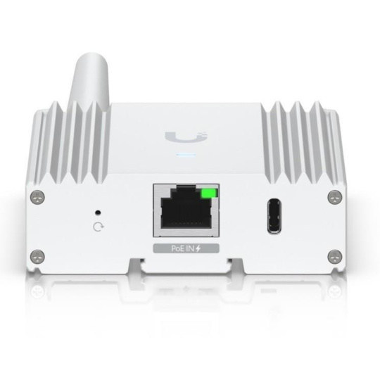 Popis produktu Proprietární bezdrátová brána s extrémně dlouhým dosahem a nízkou latencí pro UniFi Protect a StarLink senzory. Podporuje BLE (Bluetooth® 5.2) a proprietární protokol SuperLink. Brána umožňuje připojení až 96 klientů SuperLink (stále ve vývoji) na vzdálenost až 2 km a až 7 senzorů UP-Sense (BLE). SuperLink Gateway lze napájet prostřednictvím USB Type-C nebo PoE 802.3af. Může být namontována na stěnu nebo DIN lištu. Klíčové vlastnosti • Proprietární protokol SuperLink pro dlouhý dosah komunikace • Podpora až 103 připojených senzorů celkem • Napájení přes USB Type-C nebo PoE Obsah balení • SuperLink Gateway • Držák pro montáž na DIN lištu • Držák pro montáž na stěnu • Vrtací šablona • (2) Šrouby a hmoždinky Technické parametry Bezdrátové vlastnosti Bezdrátové frekvence:Bluetooth, SuperLink Zisk antény [dBi]:3 Konektory a rozhraní Rychlost LAN:(1) 10/100Mbps Napájení Napájení přes PoE:802.3af Typ napájení:PoE, USB-C Max. spotřeba energie [W]:3,4 Napájení přes konektor/svorkovnici:5V / 1A Fyzické charakteristiky Provedení:Na zeď, Na DIN lištu Použití:Vnitřní Tlačítka:Reset Provozní teplota [°C]:0 až 40 Hmotnost [g]:179 Šířka [mm]:82 Výška [mm]:159 Hloubka [mm]:26 Software Management:UniFi Protect.