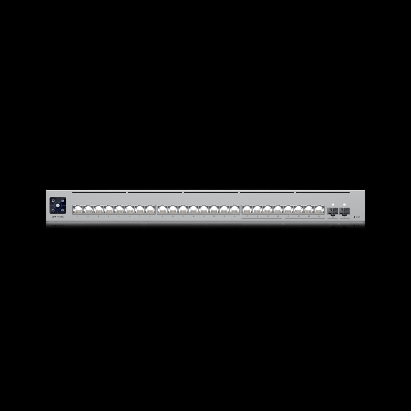 Popis produktu Ubiquiti USW Pro Max 24 je kvalitní switch. K dispozici má 8 LAN portů s rychlostí až 2,5 Gb/s. Ostatních 16 portů má rychlost 1 Gb/s. K dispozici jsou také 2 SFP+ porty o rychlosti až 10 Gb/s. Switch lze nastavit pomocí UniFi Controlleru. Je vybaven také dotykovým displejem s ovládacími prvky. Na zadní straně, kromě běžného napájení, najdeme i záložní DC napájení, které se využije například při výpadku proudu. Klíčové vlastnosti • Záložní DC napájení • Možnost nastavení přes UniFi Controller • Vysoká rychlost připojení - 8 LAN portů o rychlosti 2,5 Gb/s a 16 LAN portů o rychlosti 1 Gb/s • 2 SFP+ porty o rychlosti až 10 Gb/s Obsah balení • Zařízení • Napájecí kabel • Montážní sada do racku Technické parametry Konektory a rozhraní Rychlost LAN:(8) 100/1000/2500 Mbps + (16) 10/100/1000 Mbps Optické rozhraní:(2) 10Gbps Ostatní:Dotykový displej Napájení Typ napájení:Ze sítě (230V) Redundantní napájení:Ano Max. spotřeba energie [W]:50 Fyzické charakteristiky Provedení:Rackmount Šasi:Kovové Tlačítka:Reset Provozní teplota [°C]:-5 až 40 Šířka [mm]:443 Výška [mm]:48 Hloubka [mm]:325 Obecné Rychlost přepínání [Gbps]:112 Software Management:UniFi controller Funkce:L3.