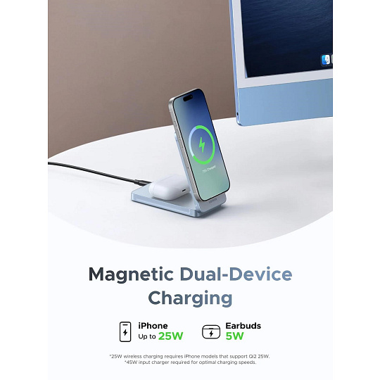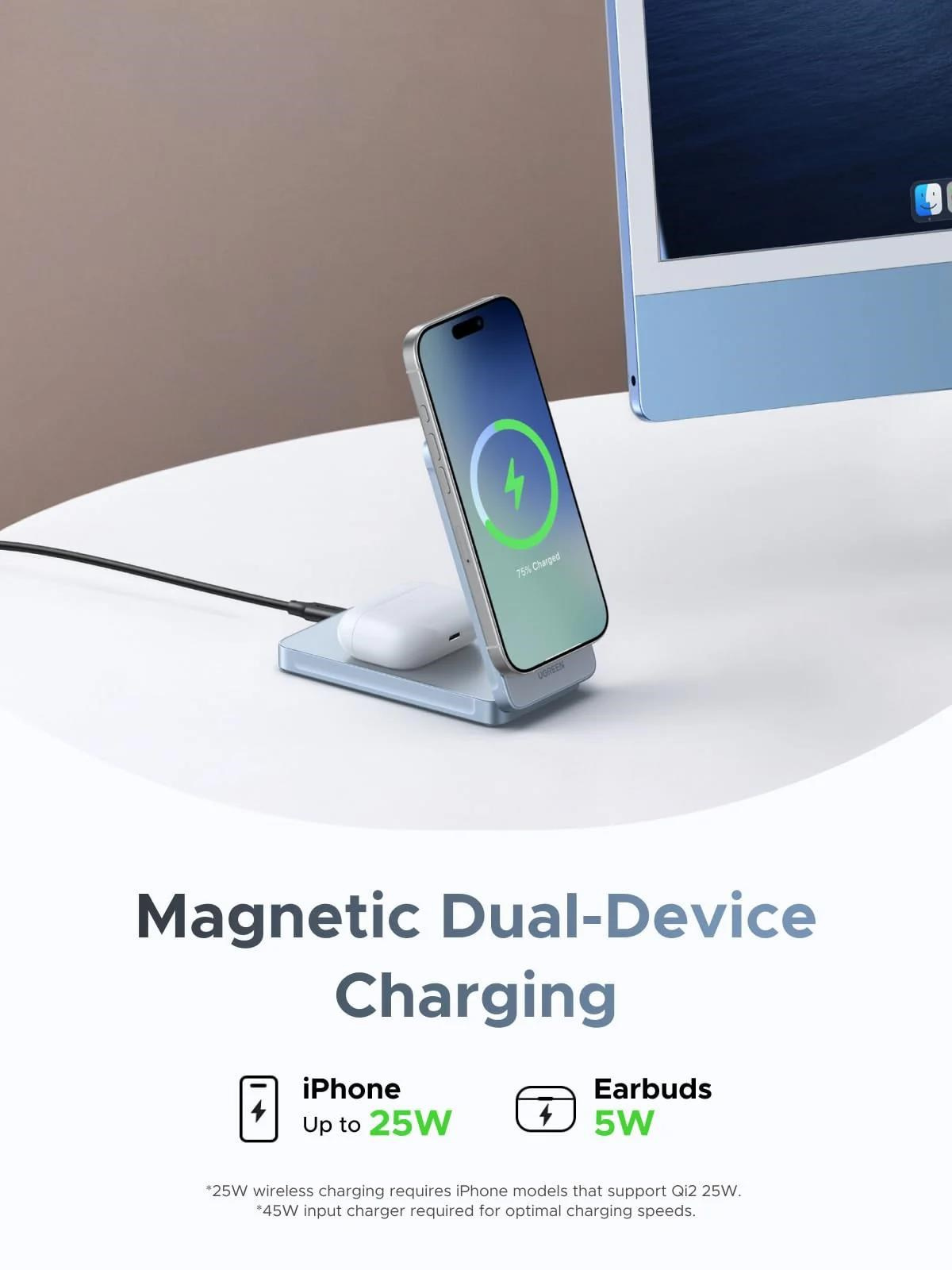 - 2v1 nabíjení: Nabíjejte současně iPhone i AirPods – jednoduché magnetické zarovnání zajišťuje pohodlné každodenní použití