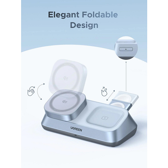 UGREEN magnetická bezdrátová nabíječka 3v1 MagFlow Qi2.2, 25W, MagSafe, stříbrná