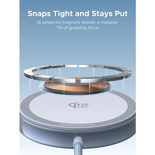 - Magnetická přesnost: Silné vestavěné magnety automaticky zarovnají telefon pro stabilní a spolehlivé nabíjení bez sklouznutí