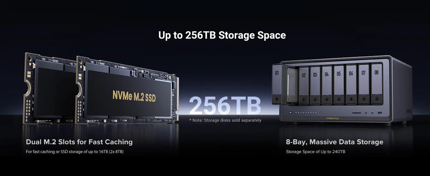 | Maximální kapacita úložiště | 196TB (6x 30TB + 2x 8TB) |