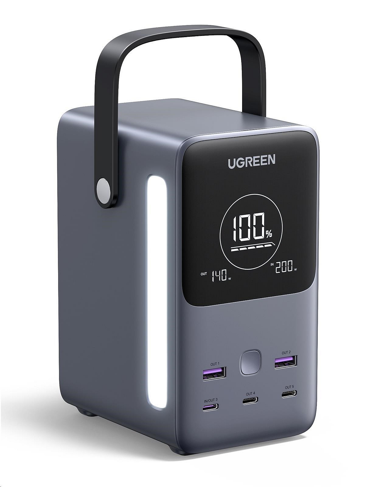 UGREEN powerbanka s rychlým nabíjením 48000mAh 5-port s displejem a LED, Li-ion, 300W, 3x USB-C, 2x USB-A, stříbrná