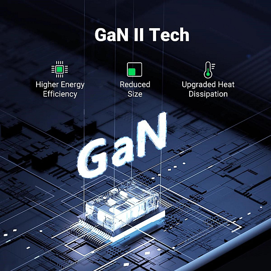 - Nová technologie GaN II: Moderní technologie zajišťuje vyšší účinnost, menší rozměry a nižší zahřívání.
