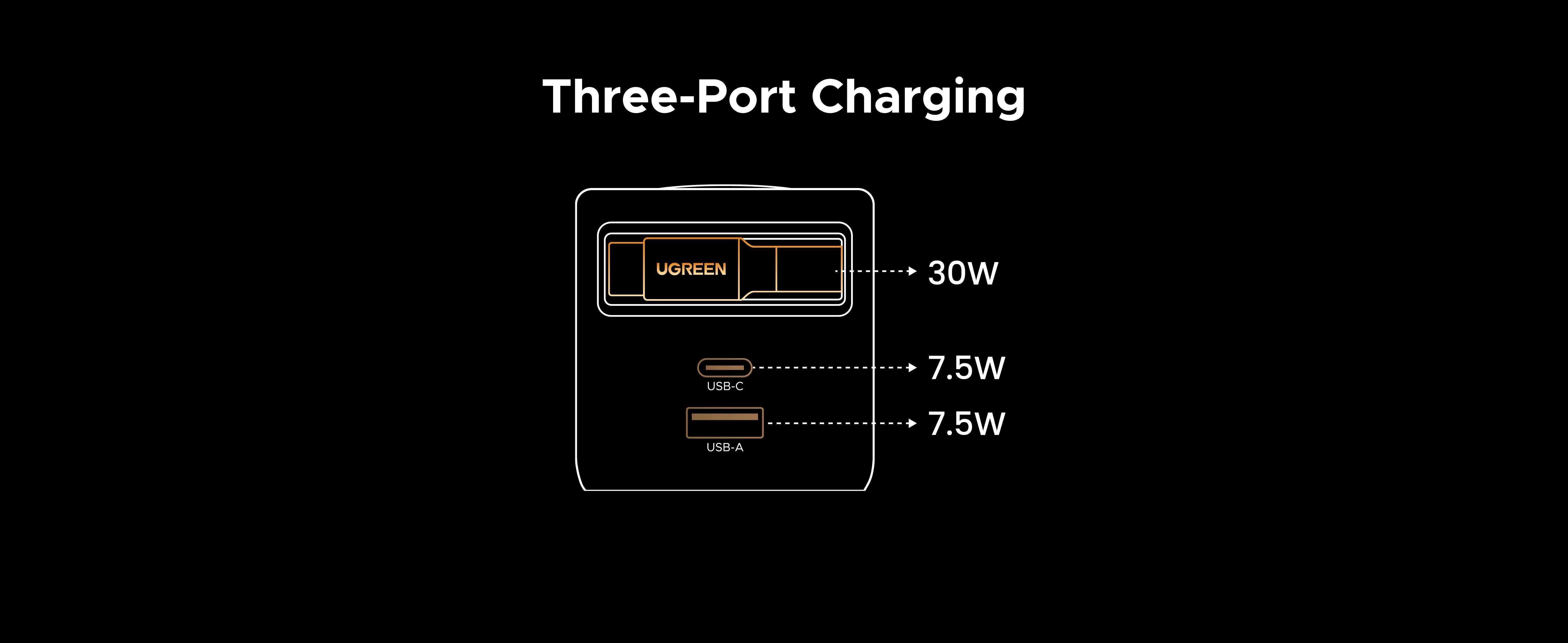 - USB-A port: až 22,5 W - Nabíjejte až 3 zařízení najednou