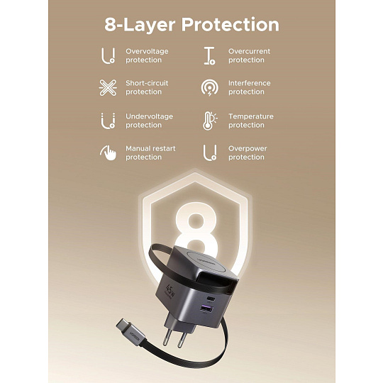 Unikátní zatahovací kabel znamená, že už nikdy nebudete hledat kabel po kapsách, batohu nebo kabelce. Stačí vytáhnout, použít a zase schovat. Vždy připravený, vždy uklizený. - Maximální bezpečnost – 8vrstvá ochrana