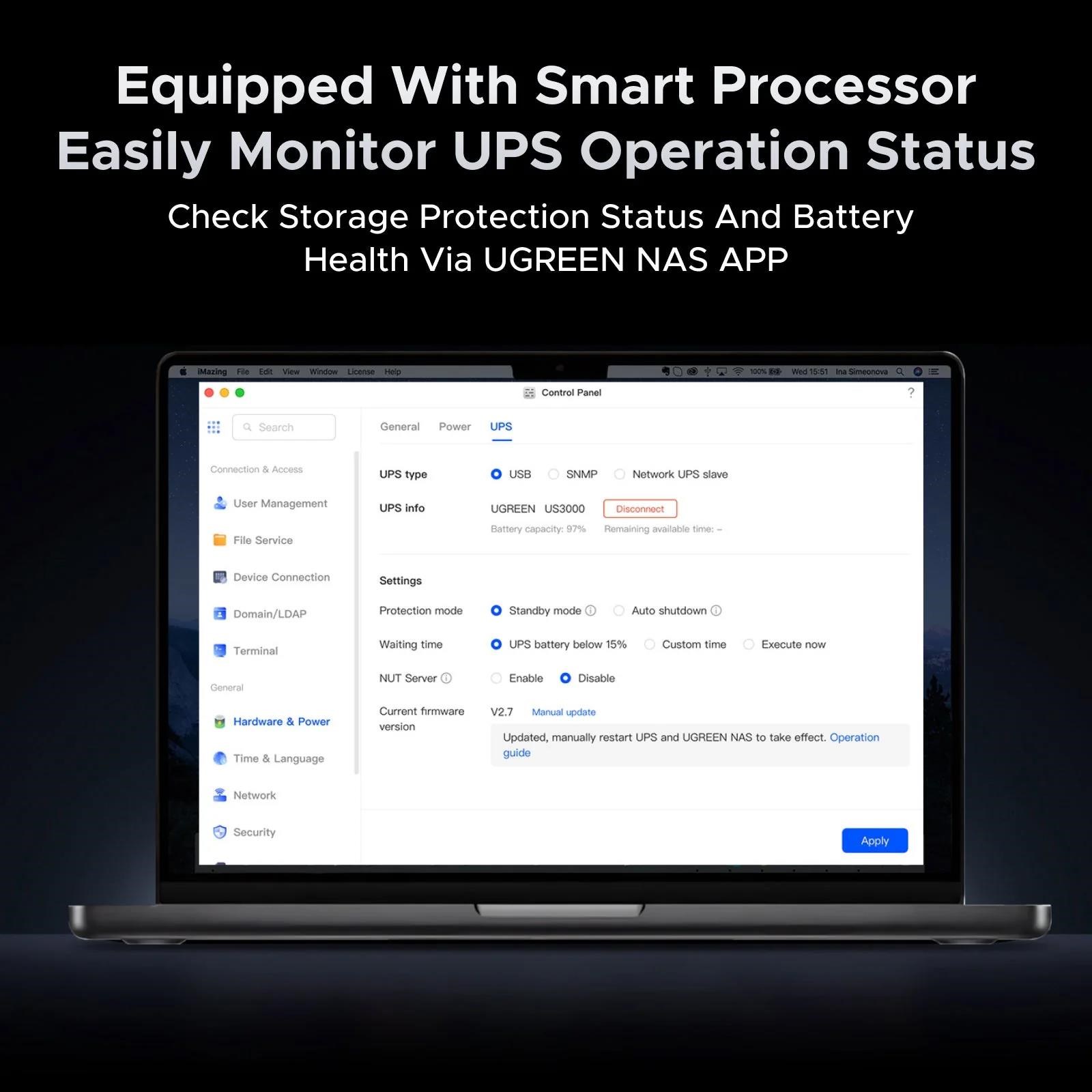 UGREEN US3000 UPS zdroj a přepěťová ochrana pro UGREEN NASync