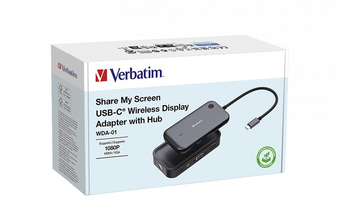 VERBATIM Display Adapter WDA-01 Share My Screen 1080P, USB-C hub