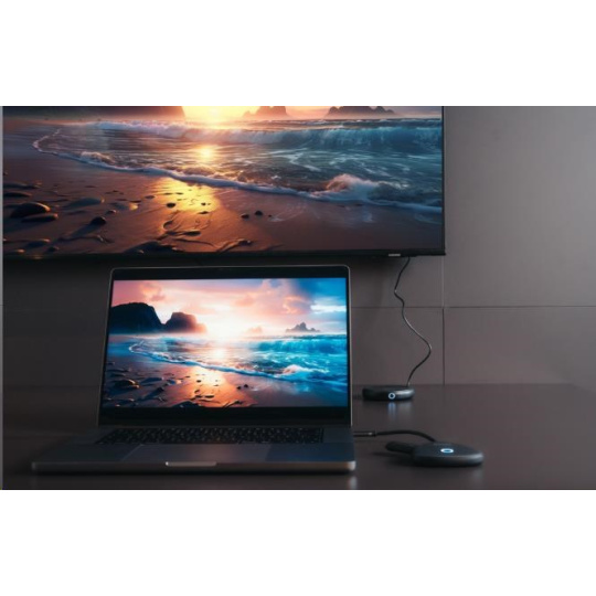 Snadné párování zajišťuje rychlé a bezpečné připojení, které uspokojí všechny úrovně technické odbornosti. Připojuje chytré telefony, tablety a notebooky k monitorům, televizorům a projektorům a je univerzálně kompatibilní se zařízeními USB-C. Rozšiřte svůj dosah a pohybujte se až 10 metrů bez ztráty signálu.