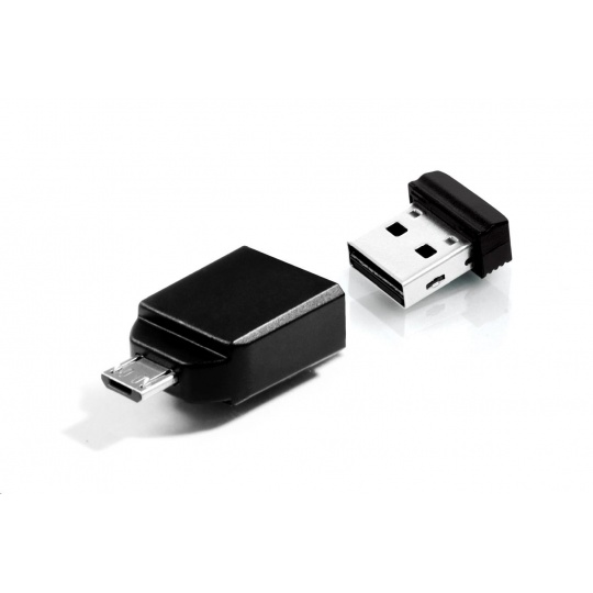 VERBATIM Flash Disk 16GB Store 'n' Stay NANO + micro USB OTG adaptér, USB 2.0, černá