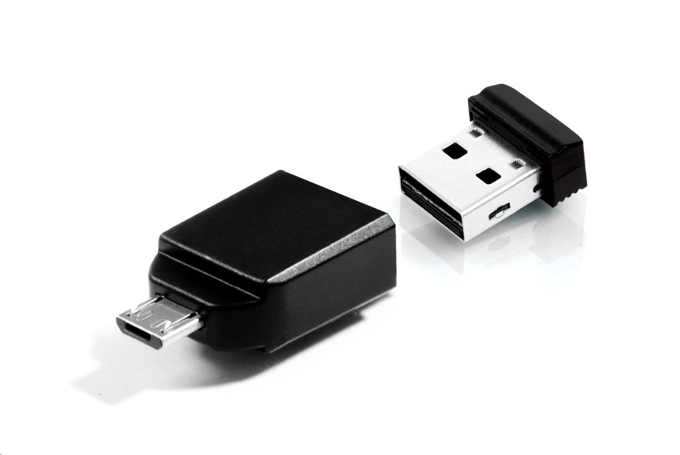 VERBATIM Flash Disk 16GB Store 'n' Stay NANO + micro USB OTG adaptér, USB 2.0, černá