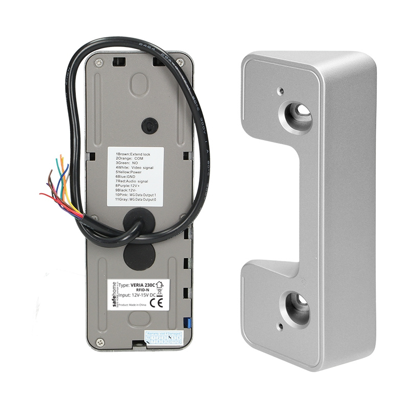 Vstupní barevná kamerová jednotka videotelefonu VERIA 230C RFID-N v kovovém a akrylátovém anti-vandal provedení určená pro videotelefony VERIA. Jednotka disponuje integrovanou kamerou se snímacím čipem CMOS o velikosti 1/4“ a s přepínáním rozlišení CVBS / 720P / 1080P, 700TVL. Pro snímaní v noci a za snížených světelných podmínek je jednotka vybavena infra červenými LED diodami.Jednotka má numerickou podsvícenou klávesnicí pro zadání hesla pro otevření elektrického zámku a především RFID čtečkou čipů a karet 125kHz.