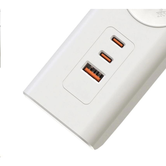Viking síťová prodlužovací zásuvka YC53, 5x AC 230V, 1x USB-A, 2x USB-C, délka 1,5 m, bílá